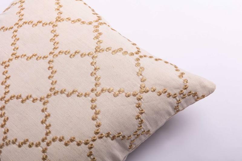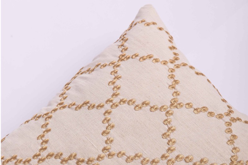 Decorative Dobby linen cushion cover with embroidered golden thread.
