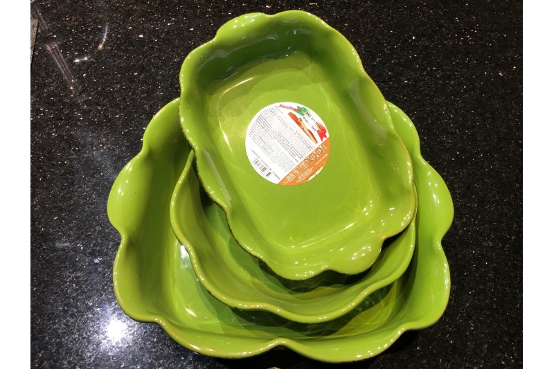 Medium size lasagne baker, it is the right size for one family of four lasagne meal, and also can be used for baking all kind of food whether is oven, microwave or on fire as well as on ordinary electric non induction stove. made of coarse, porous clay on fire then glazed with that much attractive light green color. food does not stick on the bottom. The clay porosity absorbs fat for healthier food. Recommended for cooking dishes that need to be cooked gently, over low heat.The pot is heated gradually and evenly. food retains for a long time the heat absorbed.