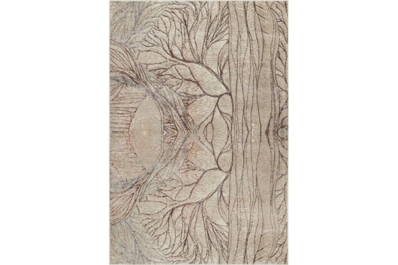 Fortune 91/GL6 est un design de tapis moderne en ingrédient de couleur beige avec des lignes brunes en forme de forêt.